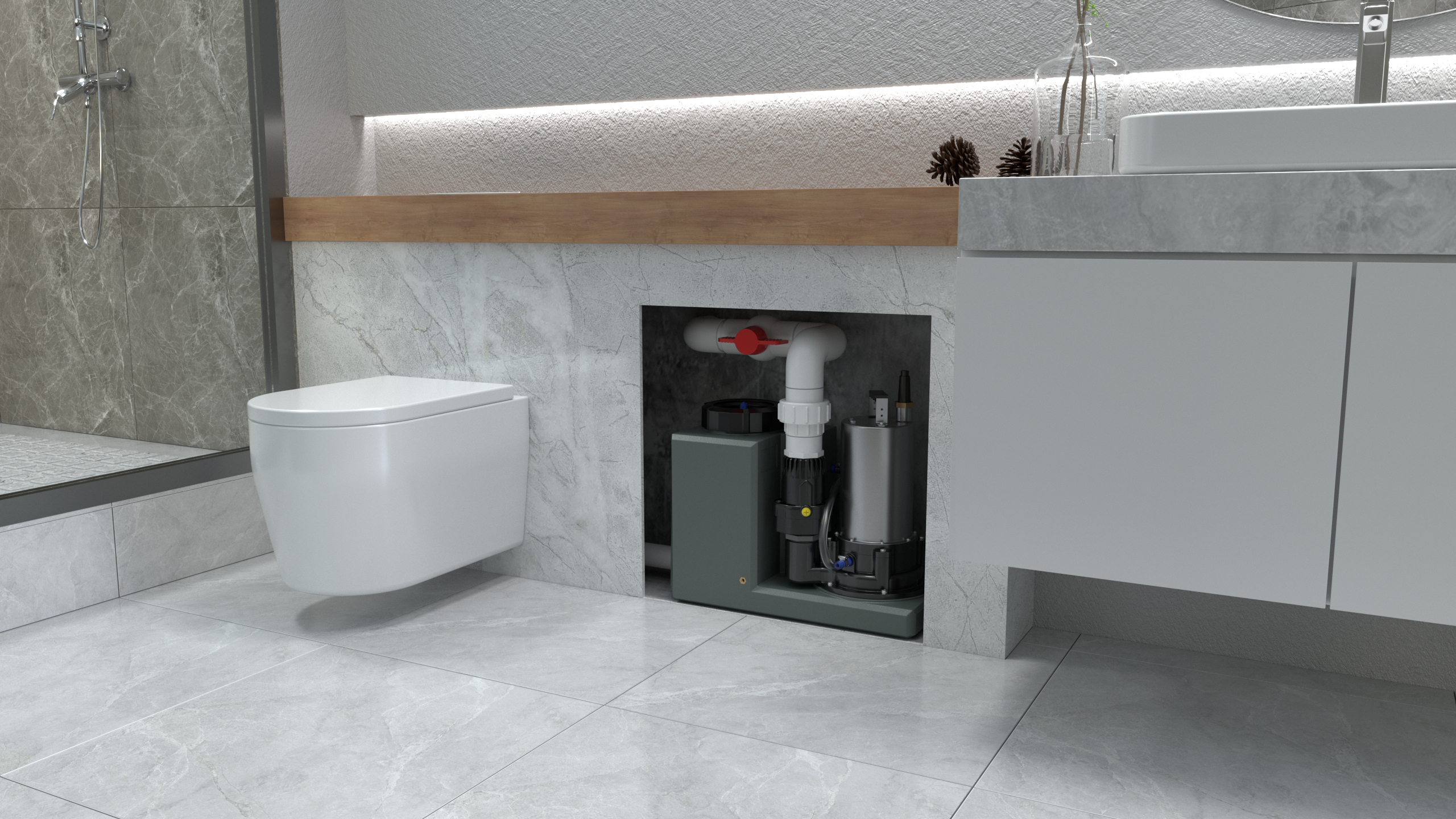 智能污水提升器輕易就幫助車庫開辟出一個帶衛生間的健身房了。