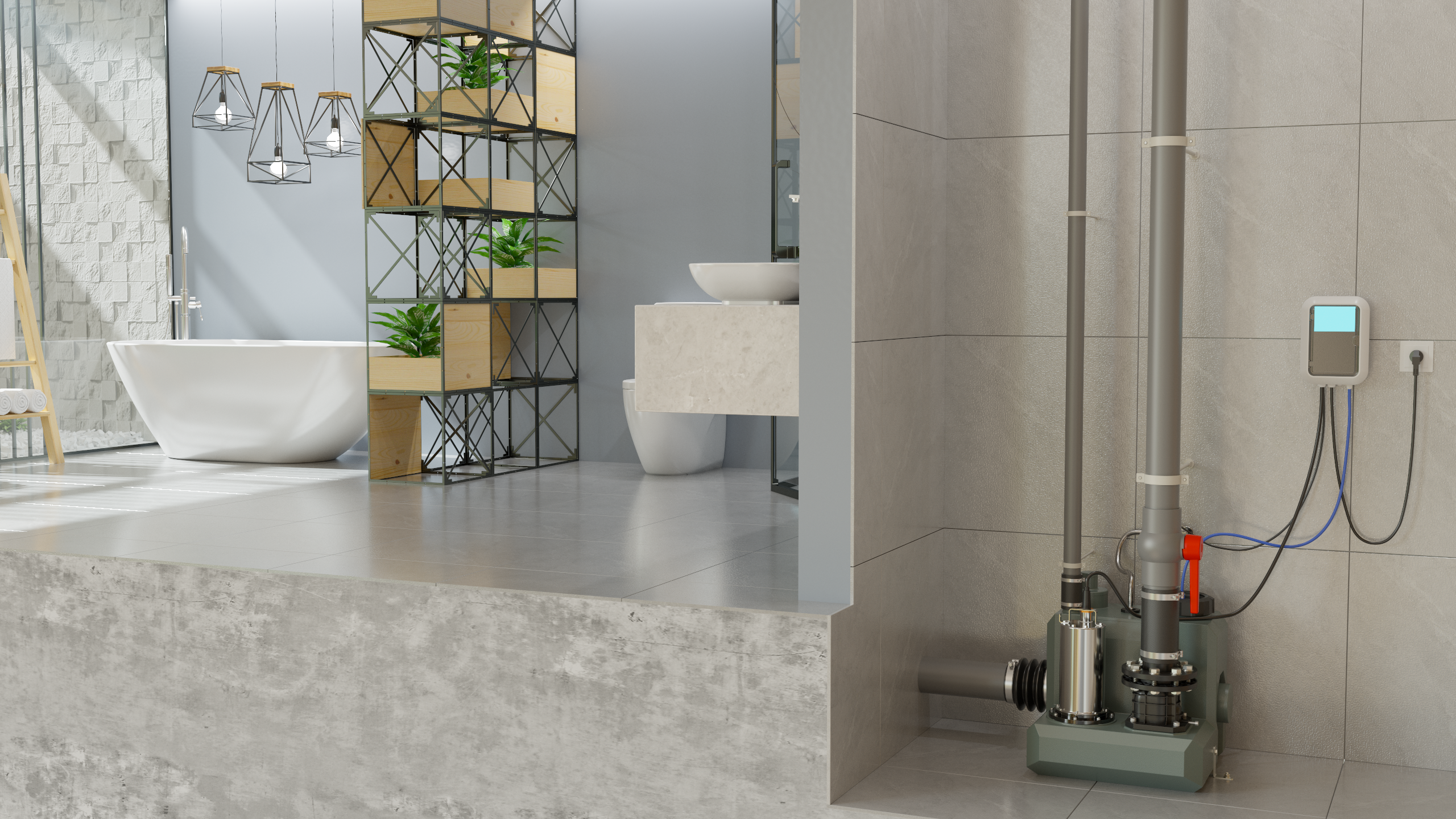 如果設(shè)置衛(wèi)生間地漏的話,則意味污水提升器要安裝在比衛(wèi)生間完成面低的坑內(nèi),如果放在坑內(nèi)安裝的話,污水提升器要保持干燥和通氣且坑內(nèi)不能有其他例如保潔衛(wèi)生時候流進坑里的意外來水,一般的小型家用提升器不能淹沒在水里運行。
