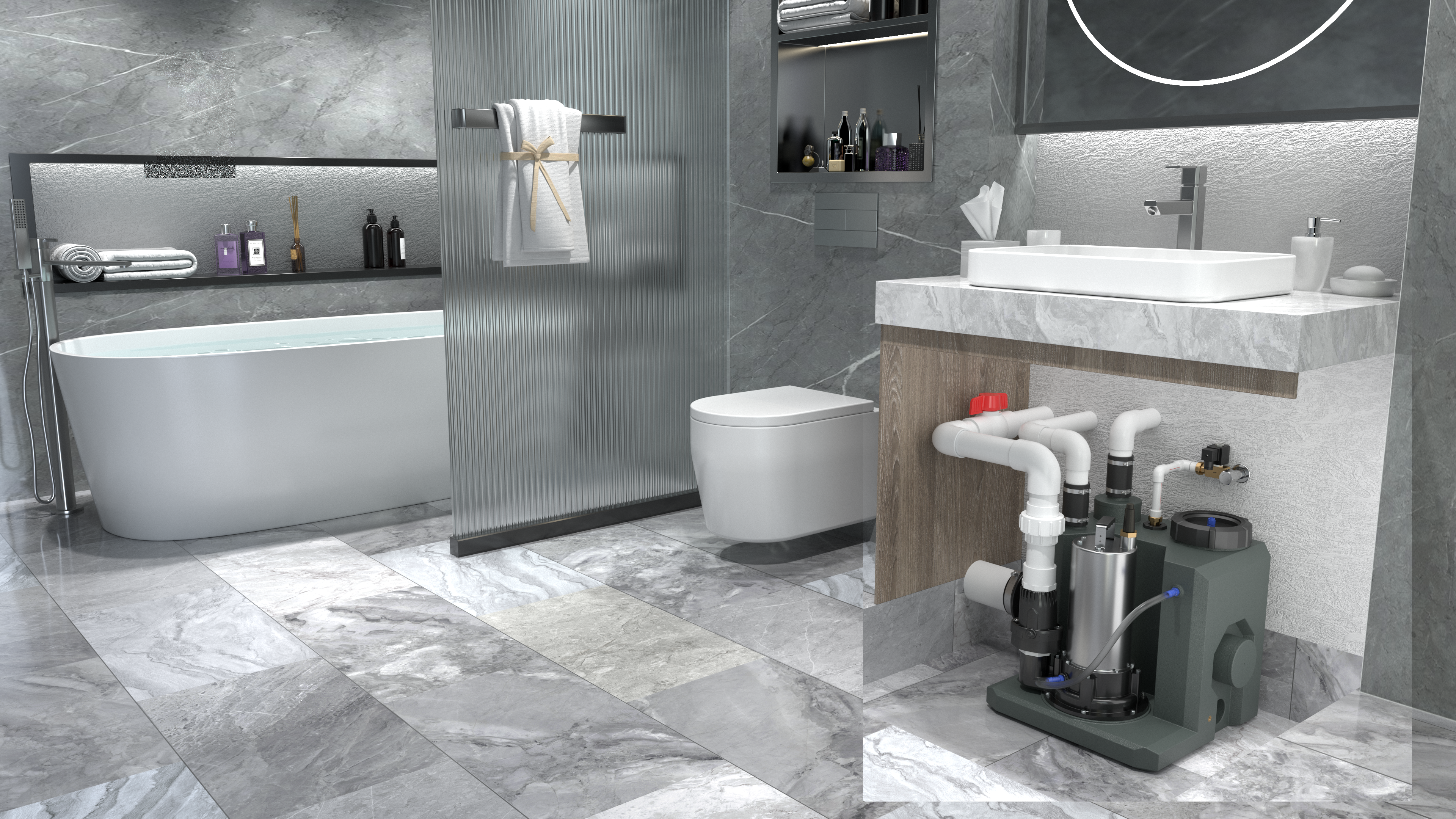 所以說如果是家中安裝小型污水提升器的話盡量不要做地漏,選擇可抬高的淋浴房,如果是大型污水提升器可埋入地下的,那么就不用考慮這么多了,淋浴間的設(shè)計就沒有排水的問題了!
