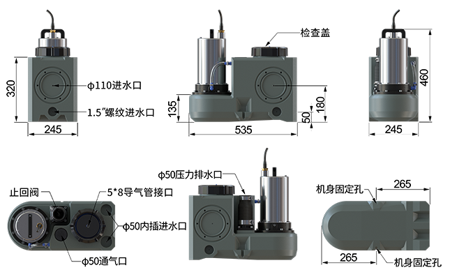 - 入水口:3×Φ110,5×Φ50